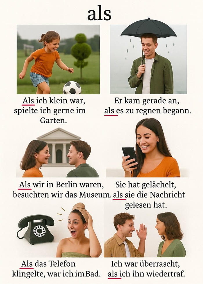„Als” este o conjuncție temporală care introduce o propoziție subordonată și indică o acțiune unică în trecut.